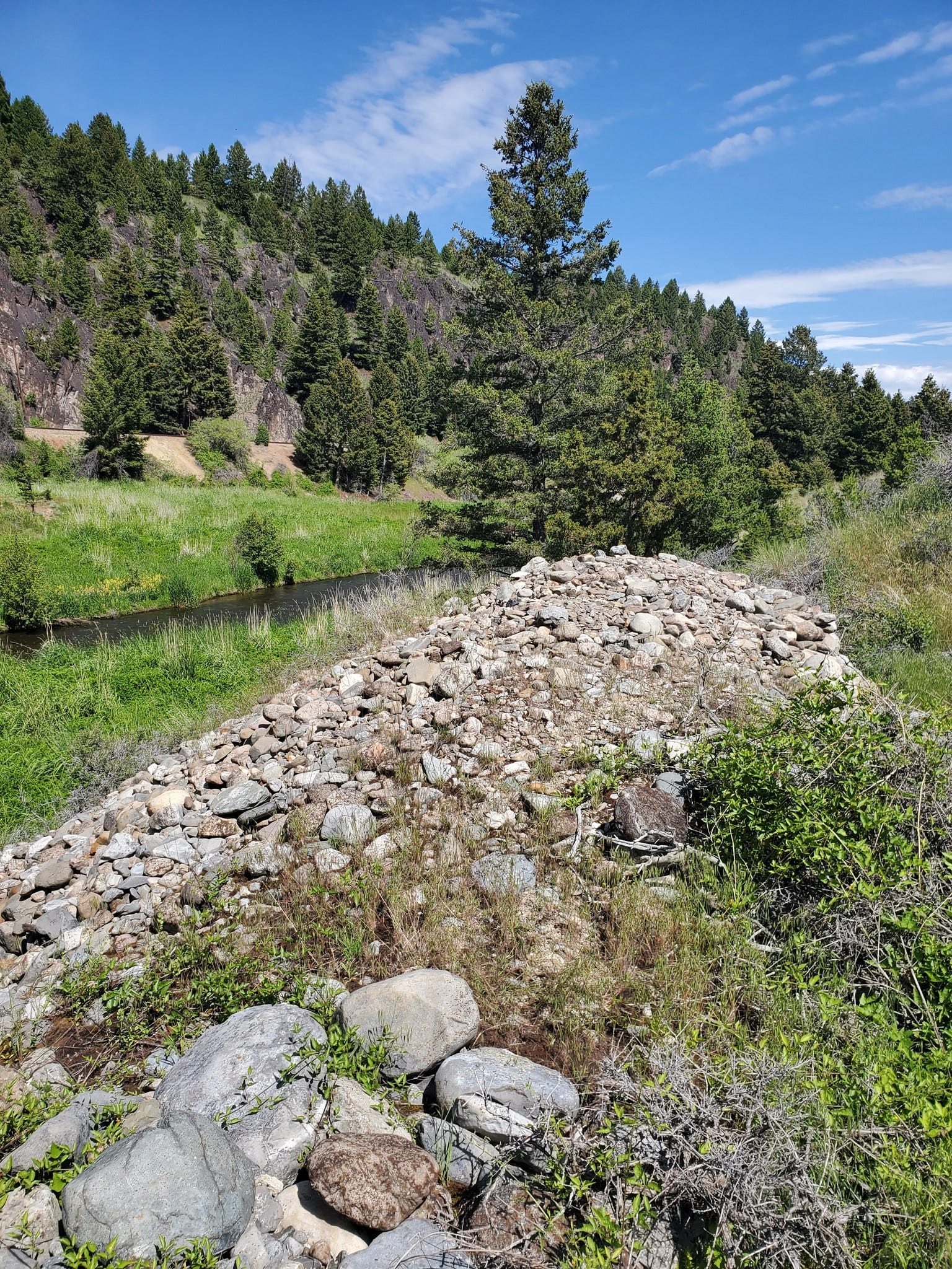 For cobbles and boulders of this size to be transported at least 10 kilometers down German Gulch and then another kilometer down Silver Bow Creek would take a lot more water than we see today in those drainages. I bet they were brought down 12,000 to 15,000 years ago, when snowfields and glaciers were melting and producing more water, but it must be admitted that the boulders could have been transported by rare but violent flash floods more recently as well.